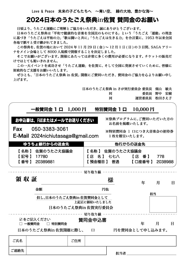 日本のうたごえ祭典in佐賀 賛同金のお願いはこちらから(PDF 727KB)